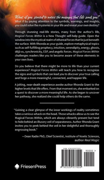 What if you started to notice the messages that life sends you? What if by paying attention to the symbols, warnings, and insights, you could solve the mysteries in your life and reveal your own destiny? Through stunning real-life stories, many from the author's life, Magical Forces Within is a New Thought self-help guide. Open the window into the mystical realm of ethereal forces that lie just beneath the surface. With Rhonda as your guide, explore metaphysical topics such as self-fulfilling prophecy, intuition, serendipity, energy, ghosts, déjà vu, synchronicity, ESP, and angelic forces. Magical Forces Within challenges readers like you to become aware of these elements in your own lives. Do you believe that there might be more to life than your current experience? Magical Forces Within will teach you how to recognize the signs and symbols that can lead you to discover your true calling and forge a more meaningful, connected, and happier life....