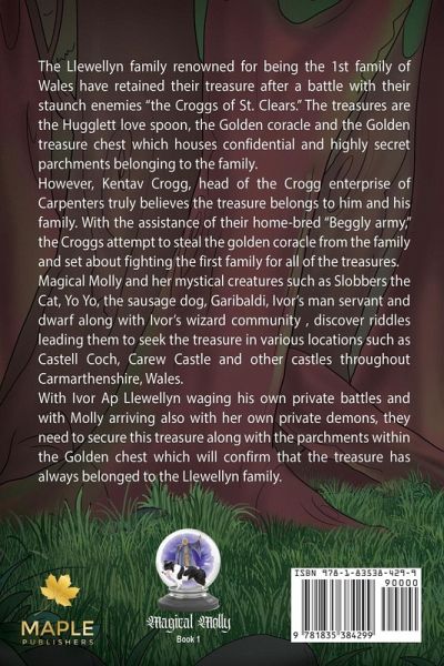 For centuries, the Llewellyn family, Wales,' First Family, has safeguarded their legendary treasures-the Hugglett Love Spoon, the Golden Coracle, and a Golden Chest filled with secret parchments. But Kentav Crogg, leader of the cunning Croggs of St. Clears, believes the treasure is rightfully his. With his ruthless Beggly army, he plots to steal it all. Magical Molly, a fearless border collie, arrives and with her mystical allies-Slobbers the Cat, Yo Yo the sausage dog, and Garibaldi the dwarf; face ancient riddles, hidden castles, and their own personal demons, as they attempt to protect their treasure before history is rewritten?