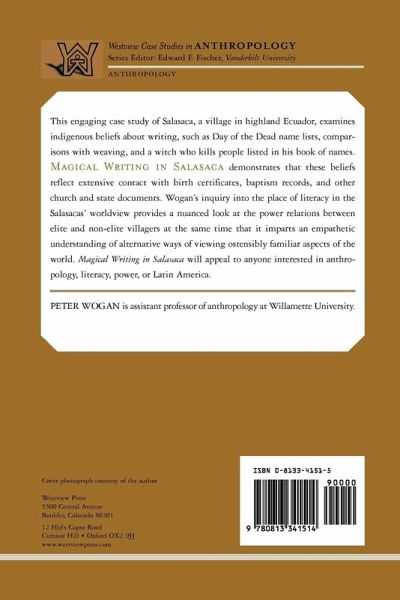 This book demonstrates that the beliefs about writing reflect extensive contact with birth certificates, baptism records, and other church and state documents. It reviews Ecuadorian history to identify the specific documentation sources that have most influenced beliefs in the witch's book.
