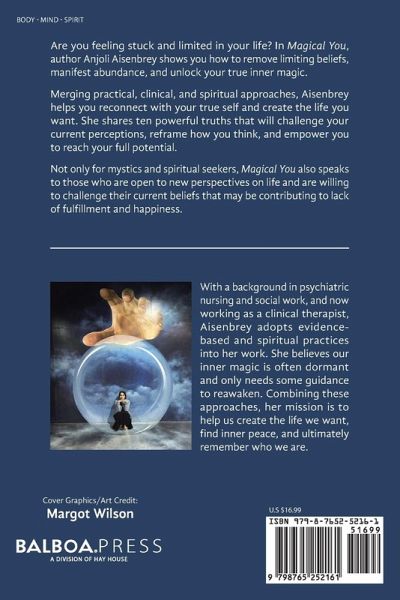 Are you feeling stuck and limited in your life? In Magical You, author Anjoli Aisenbrey shows you how to remove limiting beliefs, manifest abundance, and unlock your true inner magic. Merging practical, clinical, and spiritual approaches, Aisenbrey helps you reconnect with your true self and create the life you want. She shares ten powerful truths that will challenge your current perceptions, reframe how you think, and empower you to reach your full potential. Not only for mystics and spiritual seekers, Magical You also speaks to those who are open to new perspectives on life and are willing to challenge their current beliefs that may be contributing to lack of fulfillment and happiness.