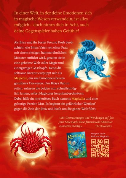 Eine mitreißende neue Reihe für alle, die schon immer wissen wollten, wo magische Tierwesen wirklich zu finden sind - und wie man sie heraufbeschwört. Als ihr Vater von einer mysteriösen Frau mit einem Hamstozeros - einer Kreuzung aus Hamster und Rhinozeros - entführt wird, entdecken Bitsy und ihr bester Freund Kosh unversehens eine geheime Welt voller Magie. Denn die seltsame Kreatur entpuppt sich als Magicore, ein aus Emotionen hervorgerufenes Tierwesen. Um den Vater zu retten, müssen die beiden ein magisches Relikt finden und dafür schnellstmöglich lernen, selbst Magicores heraufzubeschwören. Ausgestattet mit einem mächtigen Bestiarium namens Magicalia und einer gehörigen Portion Mut, begeben sich die beiden auf eine rasante Jagd, die sie um die ganze Welt führt.