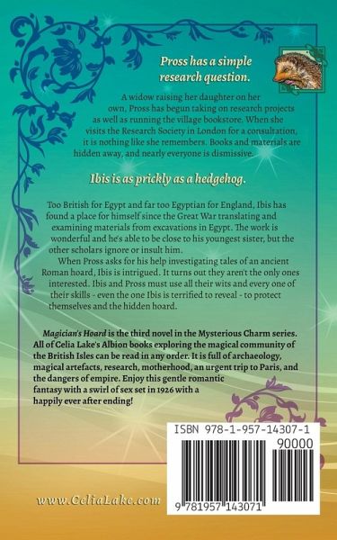 Enjoy this kind and gentle 1920s historical fantasy romance series set in the magical community of Great Britain. Pross has a simple research question. A widow raising her daughter on her own, Pross has begun taking on research projects as well as running the village bookstore. When she visits the Research Society in London for a consulation, it is nothing like she remembers. Books and materials are hidden away, and nearly everyone is dismissive. Ibis is as prickly as a hedgehog Too British for Egypt and far too Egyptian for England, Ibis has found a place for himself since the Great War translating and examining materials from excavations in Egypt. The work is wonderful and he's able to be close to his youngest sister, but the other scholars ignore or insult him. When Pross asks for his help investigating tales of an ancient Roman hoard, Ibis is intrigued. It turns out they aren't the only ones interested. Ibis and Pross must use all their wits and every one of their skills - even the one Ibis is terrified to reveal - to protect themselves and the hidden hoard. Magician's Hoard is the third novel in the Mysterious Charm series. All of Celia Lake's Albion books exploring the magical community of the British Isles can be read in any order. It is full of archaeology, magical artefacts, research, motherhood, an urgent trip to Paris, and the dangers of empire. Enjoy this gentle romantic fantasy with a swirl of sex set in 1926 with a happily ever after ending!