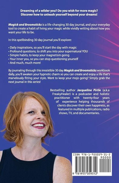 Dreaming of a wilder you? Do you wish for more magic? Discover how to unleash beyond your dreams! Would you like to have more fun? Do you want to be more YOU? Are you looking for deeper meaning? Bestselling author, podcaster, and holistic practitioner Jacqueline Pirtle has twenty-four years of experience helping thousands of clients to sync up with their magic--as featured in multiple publications and the documentary The Overly Emotional Child by Learning Success. Now she is here to give you a daily path to step into your otherworldly YOU! Magick and Broomsticks is a life-changing 30 day journal and your everyday tool to create a habit of living your magic, while vividly writing about how you want that to be. Showing up as your brightest light changes everything, because you will tap into a limitless amount of extraordinary and into a life beyond your dreams. Most importantly, this lets you find you fire so you can BE and live as such. By consciously reading, thinking, feeling, and then journaling about the profound statements and questions Jacqueline is highlighting, you'll shift your existence to an unimaginable frequency where your full potential and unlimited enchantment is possible. And by following the precepts within, you can soon enjoy the benefits of better living because no matter the circumstances, everyone deserves to have a spectacular life. In this spellbinding 30 day journal you'll explore: Daily inspirations, so you'll start the day with magic Profound questions, to shift you into your supernatural YOU Simple habits, to keep your magnetism going Your inner you, so you can stop questioning yourself And much, much more! By journaling through this irresistible 30 day Magick and Broomsticks workbook daily, you'll awaken your hypnotic charm so you can create and enjoy a life that's marvelously fitting your style. Want to keep your mojo going? Simply grab the next journal in this series! If you like magic, miracles, joy and bliss, and enjoy journaling, then you'll love Jacqueline Pirtle's profound teachings. Buy this 30 day journal Magick and Broomsticks to start living glamorously today!