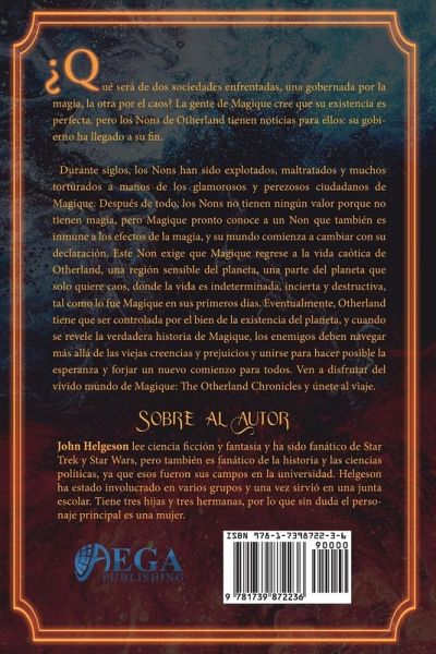 ¿Qué será de dos sociedades enfrentadas, una gobernada por la magia, la otra por el caos? La gente de Magique cree que su existencia es perfecta, pero los Nons de Otherland tienen noticias para ellos: su gobierno ha llegado a su fin.Durante siglos, los Nons han sido explotados, maltratados y muchos torturados a manos de los glamorosos y perezosos ciudadanos de Magique. Después de todo, los Nons no tienen ningún valor porque no tienen magia, pero Magique pronto conoce a un Non que también es inmune a los efectos de la magia, y su mundo comienza a cambiar con su declaración. Este Non exige que Magique regrese a la vida caótica de Otherland, una región sensible del planeta, una parte del planeta que solo quiere caos, donde la vida es indeterminada, incierta y destructiva, tal como lo fue Magique en sus primeros días. Eventualmente, Otherland tiene que ser controlada por el bien de la existencia del planeta, y cuando se revele la verdadera historia de Magique, los enemigos deben navegar más allá de las viejas creencias y prejuicios y unirse para hacer posible la esperanza y forjar un nuevo comienzo para todos. Ven a disfrutar del vívido mundo de Magique: The Otherland Chronicles y únete al viaje. Sobre el AutorJohn Helgeson lee ciencia ficción y fantasía y ha sido fanático de Star Trek y Star Wars, pero también es fanático de la historia y las ciencias políticas, ya que esos fueron sus campos en la universidad. Helgeson ha estado involucrado en varios grupos y una vez sirvió en una junta escolar. Tiene tres hijas y tres hermanas, por lo que sin duda el personaje principal es una mujer.