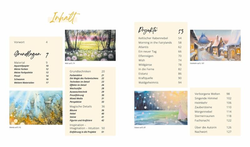 Tauchen Sie ein in die wunderbare Welt der Aquarelllandschaften, lassen Sie sich faszinieren und inspirieren und lernen Sie, Schritt für Schritt ausdrucksstarke, sanfte und mystische Motive selbst zu malen.