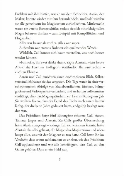 Auch das dritte Schuljahr am Magisterium kann mit einer sehr spannenden Handlung überzeugen. Es wird immer brenzlicher, da sich der Spion direkt unter ihnen befindet und sie scheinbar niemand trauen können. Dazu gibt es immer wieder die Angriffe auf Call und der befürchtet schon, dass sein guter Freund Aaron der Spion sein könnte, aber ihre Freundschaft wiegt schwer und so leicht kann nichts zwischen ihm, Aaron und Tamara kommen. Die Freundschaft der drei Freunde schafft es auch in diesen Band, viele Probleme und Hindernisse zu überwinden. Wir lernen in diesen Band die Freunde als gereifter und erwachsener kennen und man merkt, dass sie viel überlegter Handeln und doch das Risiko nicht scheuen.