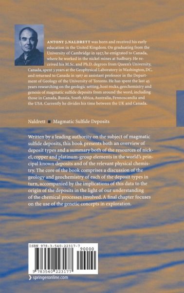 This book is written by a leading authority on the subject of magmatic sulfide deposits. An overview of deposit types, accompanied by a summary of the resources of nickel, copper and platinum-group elements in the world’s principal known deposits, is followed by a summary of the relevant physical chemistry. The core of the book comprises a discussion about the geology and geochemistry of each of the deposit types in turn, accompanied by the implications of this data to the origin of the deposits in the light of our understanding of the chemical processes involved. A final chapter focuses on the use of the genetic concepts in exploration.