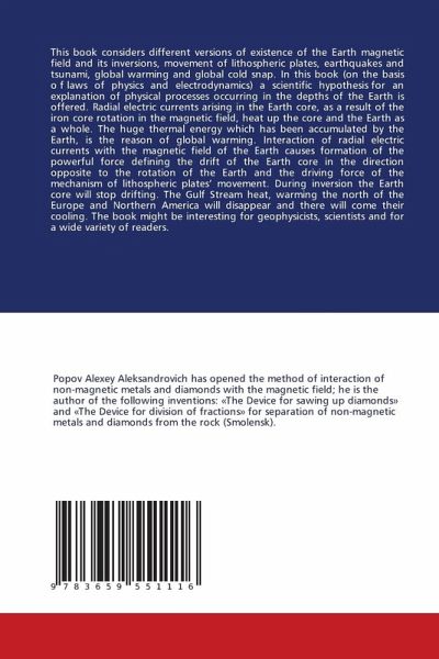 This book considers different versions of existence of the Earth magnetic field and its inversions, movement of lithospheric plates, earthquakes and tsunami, global warming and global cold snap. In this book (on the basis of laws of physics and electrodynamics) a scientific hypothesis for an explanation of physical processes occurring in the depths of the Earth is offered. Radial electric currents arising in the Earth core, as a result of the iron core rotation in the magnetic field, heat up the core and the Earth as a whole. The huge thermal energy which has been accumulated by the Earth, is the reason of global warming. Interaction of radial electric currents with the magnetic field of the Earth causes formation of the powerful force defining the drift of the Earth core in the direction opposite to the rotation of the Earth and the driving force of the mechanism of lithospheric plates movement. During inversion the Earth core will stop drifting. The Gulf Stream heat, warming the north of the Europe and Northern America will disappear and there will come their cooling. The book might be interesting for geophysicists, scientists and for a wide variety of readers.