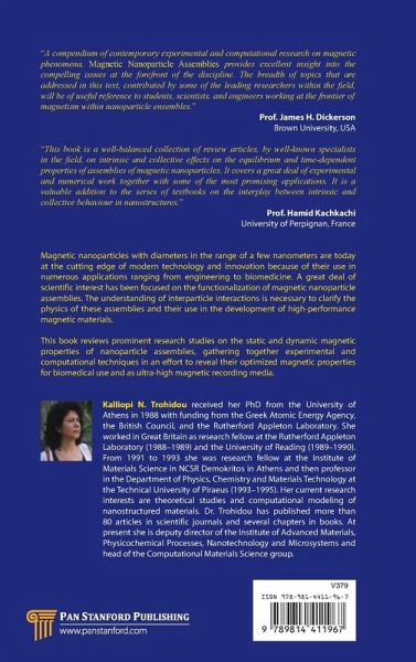 Magnetic nanoparticles with diameters in the range of a few nanometers are today at the cutting edge of modern technology and innovation because of their use in numerous applications ranging from engineering to biomedicine. A great deal of scientific interest has been focused on the functionalization of magnetic nanoparticle assemblies. The understanding of interparticle interactions is necessary to clarify the physics of these assemblies and their use in the development of high-performance magnetic materials. This book reviews prominent research studies on the static and dynamic magnetic properties of nanoparticle assemblies, gathering together experimental and computational techniques in an effort to reveal their optimized magnetic properties for biomedical use and as ultra-high magnetic recording media.