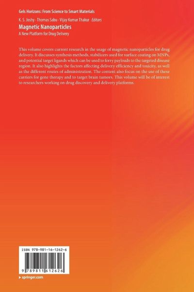 Chapter 1: Surface chemistry and properties of magnetic nanoparticles.- Chapter 2: Magnetic nanoparticles for cancer treatment.- Chapter 4: Magnetic nanoparticles for image guided drug delivery.- Chapter 5: Tailoring of magnetic nanoparticles for biomedical applications: Chapter 6: Coating of magnetic nanoparticles an in depth understanding of property changes.- Chapter 7: Biocompatibility and surface functionalisation of magnetic nanoparticles for drug delivery.- Chapter 8: Superparamagnetic nanoparticles in cancer treatment.- Chapter 9: Parameters influencing drug delivery efficiency of magnetic nanoparticles.- Chapter 10: Multifunctional magnetic nanoparticles as smart drug delivery systems.- Chapter 11: Magnetic nanoparticles for the diagnosis and therapy of brain tumors.- Chapter 12: Magnetic nanoparticles for gene delivery.- Chapter 13: Understanding of different magneticnano drug carriers.- Chapter 14: Routes of administration of magnetic nanoparticles.- Chapter 15: The fate of magnetic nanoparticles.