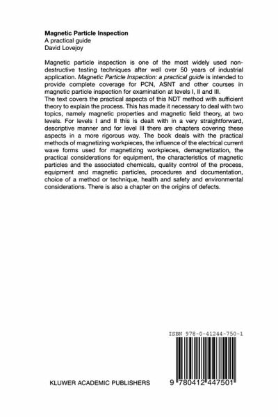 ...a thorough and up-to-date book dealing with all aspects of magnetic particle inspection...There has been a need for a book on this subject which recognises the operational constraints, reviews past practices, corrects misconceptions, states home-truths and brings MPI up to date. Magnetic Particle Inspection - A Practical Guide fulfils this need - NDT Bookcase