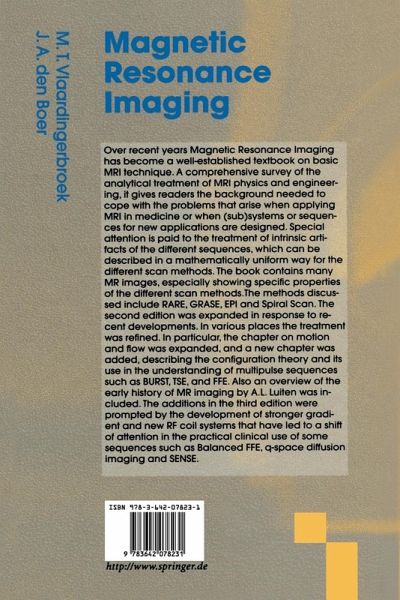 "The authors have undertaken the task to develop a coherent theoretical description of MRI, which can serve as a background for thorough understanding of recent and future developments in magnetic resonance imaging. ... the book can be recommended to specialists in medical physics who are involved in the use and research of magnetic resonance imaging." (European Radiology, Vol. 13 (7), 2003)