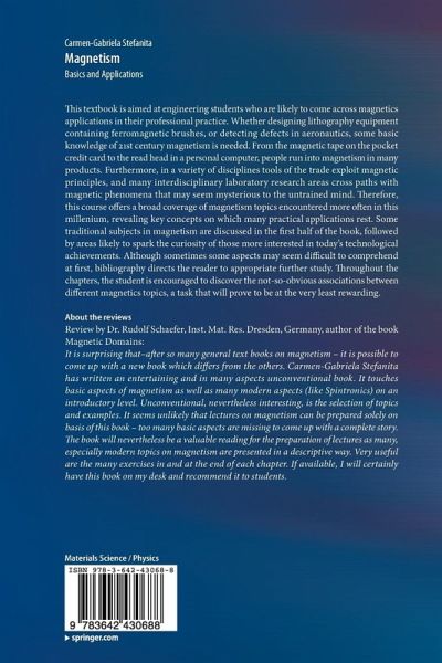 Review by Dr. Rudolf Schaefer, Inst. Mat. Res. Dresden, Germany, author of the book Magnetic Domains: It is surprising that - after so many general text books on magnetism - it is possible to come up with a new book which differs from the others. Carmen-Gabriela Stefanita has written an entertaining and in many aspects unconventional book. It touches basic aspects of magnetism as well as many modern aspects (like Spintronics) on an introductory level. Unconventional, nevertheless interesting, is the selection of topics and examples. It seems unlikely that lectures on magnetism can be prepared solely on basis of this book - too many basic aspects are missing to come up with a complete story. The book will nevertheless be a valuable reading for the preparation of lectures as many, especially modern topics on magnetism are presented in a descriptive way. Very useful are the many exercises in and at the end of each chapter. If available, I will certainly have this book on my desk and recommend it to students.