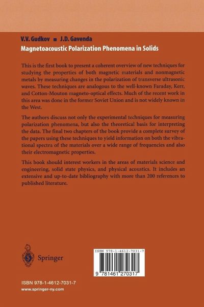 This book had its conception when Dr. Gudkov visited me in Austin in the Fall of 1995 and urged me to join him in writing a review of the field of magnetoacoustic polarization phenomena. I protested that, although my students and I had done some early work on this topic, most of the later work was done by researchers at the Institute for Metal Physics and by other investigators in the former Soviet Union. He eventually persuaded me that my initial contribution and general experience with magnetoacoustic phenomena qualified me to serve as a co-author. When I considered the fact that the extensive exploration of magnetoacoustic phenomena in the former Soviet Union was relatively unknown to Western scientists, I agreed to work with him on this project. In order to make the material more accessible to nonspecialists, we have adopted consistent notation throughout the text and redrawn the figures from published papers in a consistent fashion. Because our two institutions lie on opposite sides of the world, we needed some financial support to bring the book to fruition. We are very grateful to the Science Program for International Collaboration of the North Atlantic Treaty Organization for financial support through Grant No. HTECH. CRG 951549. I have dedicated this book to my wife, Janie, in recognition of the support she has given me throughout my professional career. J. D.