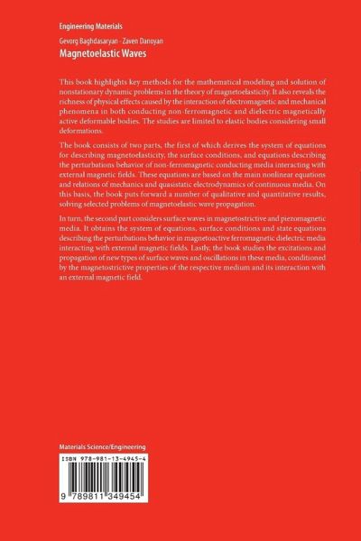 The book consists of two parts, the first of which derives the system of equations for describing magnetoelasticity, the surface conditions, and equations describing the perturbations behavior of non-ferromagnetic conducting media interacting with external magnetic fields. These equations are based on the main nonlinear equations and relations of mechanics and quasistatic electrodynamics of continuous media. On this basis, the book puts forward a number of qualitative and quantitative results, solving selected problems of magnetoelastic wave propagation.