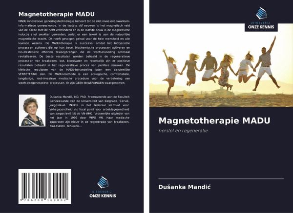 MADU innovatieve genezingstechnologie behoort tot de niet-invasieve kwantum-informatieve geneeskunde. In de laatste vijf eeuwen is het magnetisch veld van de aarde met de helft verminderd en in de laatste eeuw is de magnetische inductie snel zwakker geworden, zodat er een tekort is aan de natuurlijke magnetische kracht. Dit heeft gevolgen gehad voor de hele mensheid en alle levende wezens. De MADU-therapie is succesvol omdat het biofysische processen activeert die op hun beurt biochemische processen activeren en bio-elektrische effecten teweegbrengen die de weefselvoeding optimaal revitaliseren. De beste resultaten worden behaald in de regeneratieve processen van kraakbeen, bot, bloedvaten en recentelijk zijn er positieve resultaten behaald in het regeneratieve proces van perifere zenuwen. De klinische resultaten van de MADU-behandeling laten een aanzienlijke VERBETERING zien. De MADU-methode is een ecologische, comfortabele, langdurige, niet-invasieve medische procedure voor de verbetering van weefselregeneratieve processen. Er zijn GEEN BIJWERKINGEN waargenomen.