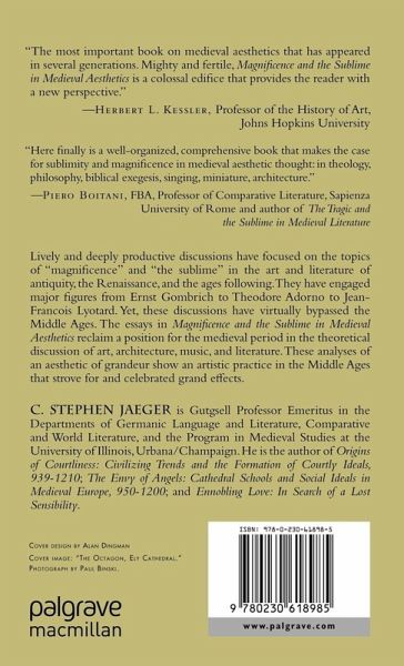 Lively and deeply productive discussions have focused on the topics of "magnificence" and "the sublime" in the art and literature of antiquity, the Renaissance, and the ages following. They have engaged major figures from Ernst Gombrich to Theodore Adorno to Jean-Francois Lyotard. Yet, these discussions have virtually bypassed the Middle Ages. The essays in "Magnificence and the Sublime in Medieval Aesthetics" reclaim a position for the medieval period in the theoretical discussion of art, architecture, music, and literature. These analyses of an aesthetic of grandeur show an artistic practice in the Middle Ages that strove for and celebrated grand effects.