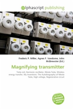 The magnifying transmitter is an advanced version of the classic Tesla coil. It is a high power harmonic oscillator that Nikola Tesla proposed for the wireless transmission of electrical energy. In his autobiography, Tesla stated that "...I feel certain that of all my inventions, the Magnifying Transmitter will prove most important and valuable to future generations." The magnifying transmitter is an air-core, multiple-resonant transformer that can generate very high voltages. Tesla originally termed it self-regenerative resonant transformer, a term that is no longer in general use.