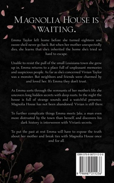 Magnolia House is waiting. Emma Taylor left home as soon as she turned eighteen and swore she'd never go back. But when her mother unexpectedly dies, she learns that she's inherited the home she's tried so hard to escape. Unable to resist the pull of the small Louisiana town she grew up in, Emma returns to a place full of unpleasant memories and suspicious people. As far as she's concerned Vivian Taylor was a monster. But neighbors and friends were charmed by and loved her. It's Emma they don't trust. As Emma sorts through the remnants of her mother's life she uncovers long hidden secrets with deep roots. In the night the house is full of strange sounds and a watchful presence. Magnolia House has not been abandoned. Vivian is still there. To further complicate things Emma meets Jake, a man even more distrusted by the town than herself, and discovers his dark history is interwoven with Vivian's secrets. To put the past at rest Emma will have to expose the truth about her mother and break ties with Magnolia House once and for all.