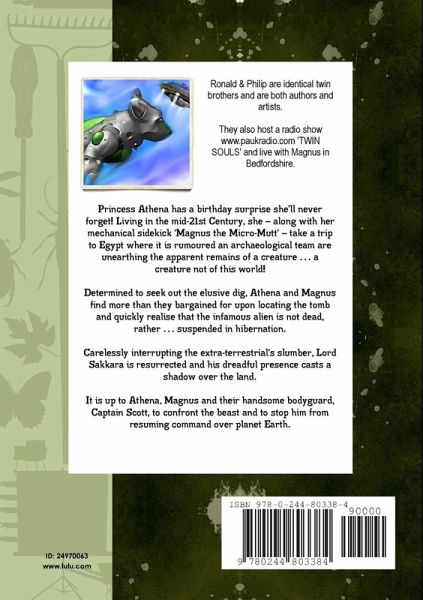 Princess Athena has a birthday surprise she?ll never forget! Living in the mid-21st Century, she ? along with her mechanical sidekick ?Magnus the Micro-Mutt? ? take a trip to Egypt where it is rumoured an archaeological team are unearthing the apparent remains of a creature ? a creature not of this world! Determined to seek out the elusive dig, Athena and Magnus find more than they bargained for upon locating the tomb and quickly realise that the infamous alien is not dead, rather ? suspended in hibernation. Carelessly interrupting the extra-terrestrial?s slumber, Lord Sakkara is resurrected and his dreadful presence casts a shadow over the land. It is up to Athena, Magnus and their handsome bodyguard, Captain Scott, to confront the beast and to stop him from resuming command over planet Earth.