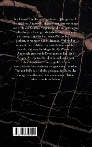 Nach einem Familienstreit gerät der 13jährige Tom in die magische Anderwelt. Er entkommt dort nur knapp mit Hilfe des Kobolds Magnus, der ihn zu seiner Familie zurückbringen soll. Das ist schwieriger als gedacht, da Tom einen Zeitsprung ausgelöst hat. Seine Welt ist 14 Jahre gealtert, er hingegen nur 14 Stunden. Während Tom versucht, das Unfaßbare zu akzeptieren, wird ihm bewußt, daß auch für die Wesen der Anderwelt sein Eindringen gravierende Konsequenzen hat. Eine Gruppe Zwerge trachtet ihm sogar nach dem Leben. Doch die eigentlichen Schwierigkeiten beginnen erst, als Tom seine Familie wiederfindet. Sein unerklärliches Verschwinden hat diese tief gezeichnet. Wird es Tom mit Hilfe des Kobolds gelingen, der Rache der Zwerge zu entkommen und einen neuen Platz in seiner Familie zu finden?