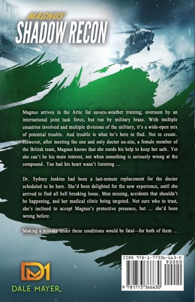 Magnus arrives in the Artic for severe-weather training, overseen by an international joint task force, but run by military brass. With multiple countries involved and multiple divisions of the military, it's a wide-open mix of potential trouble. And trouble is what he's here to find. Not to create. However, after meeting the one and only doctor on-site, a female member of the British team, Magnus knows that she needs his help to keep her safe. Yet she can't be his main interest, not when something is seriously wrong at the compound. Too bad his heart wasn't listening ...Dr. Sydney Jenkins had been a last-minute replacement for the doctor scheduled to be here. She'd been delighted for the new experience, until she arrived to find all hell breaking loose. Men missing, accidents that shouldn't be happening, and her medical clinic being targeted. Not sure who to trust, she's inclined to accept Magnus's protective presence, but ... she'd been wrong before.Making a mistake under these conditions would be fatal-for both of them ...