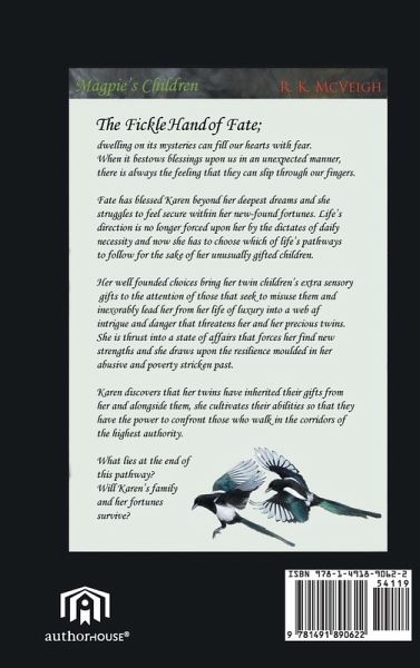 The Ficle Hand of Fate; Dwelling on its mysteries can fill our hearts with fear. When it bestows blessings upon us in an unexpected manner. There is always the feeling that they can slip through our fingers. Fate has blessed Karen beyond her deepest dreams and she struggles to feel secure within her new found fortunes. Life direction is no longer forced upon her by the dictates of daily necessity and now she has to choose which of life's pathways to follow for the sake of her unusually gifted children. Her well founded choices bring her twin children's extra sensory gifts to ensure that those that seek to misuse them and inexorably lead her from her life of luxury into a web of intrigue and danger that threatens her and her precious twins. She is thrust into a state of affairs that forces her find new strengths and she draws upon the resilience moulded in her abusive and poverty stricken past. Karen discovers that her twins have inherited their gifts from her and alongside them, she cultivates their abilities so that they have the power to confront those who walk in the corridors of the higgest authority. What lies at the end of this pathway? Will Karen's family and her fortunes survive?