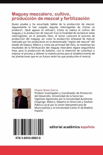 Quien prueba y ha escuchado hablar de la producción de mezcal, seguramente le han surgido algunas interrogantes de ¿Cómo se produce?, ¿Qué agaves se utilizan?, Cómo se realiza el cultivo del maguey y la producción de mezcal? Con la finalidad de esclarecer estas interrogantes, en el presente libro, el lector conocerá el proceso de producción del maguey, así como la producción artesanal de mezcal realizada por los productores en la denominada región del mezcal del estado de Oaxaca, México y como eje principal del libro, se muestran los resultados de la fertilización del maguey mezcalero Agave angustifolia Haw, para la producción de bulbilos, con la intención de contribuir a mejorar el proceso y obtener la materia prima para el establecimiento de las plantaciones que en un futuro serán las que producirán el mezcal.