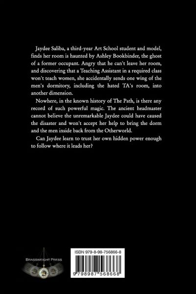 Jaydee Saliba, a third-year Art Student and model, finds her room is haunted by Ashley Bookbinder, the ghost of a former occupant. Angry that he can't leave her room and discovering that a Teaching Assistant in a required class won't teach women, she accidentally sends one wing of the men's dormitory, including the hated TA's room and her best friend's boyfriend, into another dimension. Nowhere, in the known history of The Path, is there any record of such powerful magic. The ancient headmaster cannot believe the unremarkable Jaydee could have caused the disaster and won't accept her help to bring the dorm and the men inside back from the Otherworld. Can Jaydee learn to trust her own hidden power enough to follow where it leads her?