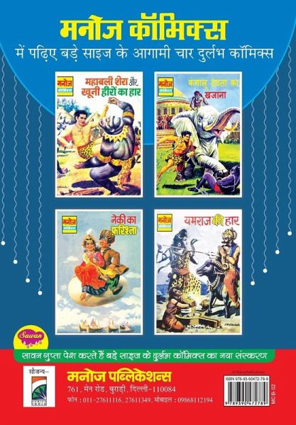 Get ready for an action-packed adventure with the fearless hero Mahabali Shera in "Mahabali Shera aur Kala Pret"! When a dark and sinister presence threatens to plunge the world into eternal darkness, it's up to Mahabali Shera to step up and save the day. With incredible strength, cunning tactics, and unwavering determination, he sets out to confront the mysterious Kala Pret and end its evil plans. But can Mahabali Shera triumph over the forces of darkness, or will its power consume him? Find out in this thrilling comic book from Manoj Comics.