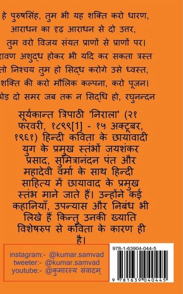 Even in the first half of the 20s, some epics were written, but by the time of Jaishankar Prasad's 'Kamayani', the tradition came to an end. The novel took away almost everything of the epic, but the sentiment was still left, and by incorporating this feel, the Mahapraana invented a new style of poetry which had a full esense of epic feeling but limited description. Now the variety and completeness of the sentiment were put aside, but its intensity and depth increased, which the novel could never have. In such a intense feeling, Mahapraan Niraala wrote many long poetries which are still a benchmark of literature.