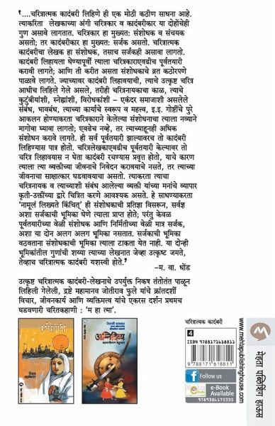 IT IS INDEED A HERCULEAN TASK TO WRITE A BIOGRAPHY. THE WRITER SHOULD POSSESS THE QUALITIES OF A NOVELIST AND A BIOGRAPHER TOO. THE BIOGRAPHER MAINLY HAS A MIND THAT OF A RESEARCHER, AT THE SAME TIME, HE IS A COLLECTOR OF THINGS. A NOVELIST MAINLY WORKS ON INNOVATIVE IDEAS, HE CREATES IDEAS AND THE BIOGRAPHER SIMPLY PUTS THE PAST THINGS INTO WORDS NOT CHANGING ANY ASPECT OR NOT GIVING ANY DIMENSION TO THINGS. BOTH THE NOVELIST AND THE BIOGRAPHER HAVE TO RESEARCH A LOT BEFORE STARTING ON SOME WORK, AND THAT TOO WITH UTMOST DEDICATION. AN AUTHOR HAS TO STUDY THE CHARACTER IN DETAIL, NOT ONLY THIS, HE HAS TO STUDY THE CONTEMPORARY SITUATION, THE PEOPLE, THE FAMILY MEMBERS OF THE ONE WHOSE BIOGRAPHY IS TO BE WRITTEN, HIS FRIENDS, HIS RIVALS, HIS RELATION WITH THE SOCIETY AS SUCH, HIS WORK, ITS NATURE, ITS IMPORTANCE, ETC. HE HAS TO STUDY EVERYTHING WITH A NEW ANGLE. EVEN THOUGH THE READY MATERIAL IS AVAILABLE FROM THE BIOGRAPHER THE NOVELIST HAS TO GO THROUGH IT AGAIN AND AGAIN, NOT MISSING ANY SINGLE DETAIL. MANY A TIMES HE HAS TO RESEARCH AGAIN NOT JUST FOR CONFIRMATION OR VERIFICATION BUT TO MAKE SURE THAT NO FALSE INFORMATION IS QUOTED ANYWHERE. HE PREPARES HIMSELF FULLY AS GOOD AS THE BIOGRAPHER, BUT THEN SETTLES DOWN TO GIVE IT A FORM OF NOVEL. HE DOES NOT INTEND TO NARRATE ABOUT THE LIFE OF THE CONCERNED PERSON. ON THE CONTRARY, HE HAS TO REVEAL THE TRUE QUALITIES OF THE GREAT PERSONALITY TO PEOPLE. HE HAS TO PEN DOWN VERY PRECISELY THE EVENTS RELATED TO THE CONCERNED PERSON AND THE OTHERS AROUND HIM. A RESEARCHER DOES NOT WRITE ANYTHING WHICH HAS NO BASE. BUT A BIOGRAPHER CUM NOVELIST HAS TO COME OUT OF THIS ROLE, HE HAS TO THINK AND ACT LIKE A CREATOR. WHEN HE IS AN INNOVATOR HE STILL HAS TO RETAIN THE ROLE OF A RESEARCHER. WHEN THE BEST OUT OF THESE TWO IS BLENDED TOGETHER PROPERLY THEN ONLY THE BIOGRAPHY CUM NOVEL IS A SUCCESS. M. V. DHOND. MAHATMA IS A BIOGRAPHY CUM NOVEL, EXPLORING THE WONDERFUL BLEND OF THE PERSONALITY, THE WORK DONE AND THE REVOLUTIONARY THINKING OF JYOTIBA PHULE. ....¿¿¿¿¿¿¿¿¿¿¿ ¿¿¿¿¿¿¿ ¿¿¿¿¿¿ ¿¿ ¿¿ ¿¿¿¿ ¿¿¿¿ ¿¿¿¿¿ ¿¿¿. ¿¿¿¿¿¿¿¿¿ ¿¿¿¿¿¿¿¿¿ ¿¿¿¿ ¿¿¿¿¿¿¿¿¿ ¿ ¿¿¿¿¿¿¿¿¿¿ ¿¿ ¿¿¿¿¿¿¿¿¿ ¿¿¿ ¿¿¿¿¿ ¿¿¿¿¿¿. ¿¿¿¿¿¿¿¿¿ ¿¿ ¿¿¿¿¿¿: ¿¿¿¿¿¿ ¿ ¿¿¿¿¿ ¿¿¿¿; ¿¿ ¿¿¿¿¿¿¿¿¿¿ ¿¿ ¿¿¿¿¿¿: ¿¿¿¿¿ ¿¿¿¿. ¿¿¿¿¿¿¿¿¿¿¿ ¿¿¿¿¿¿¿¿¿ ¿¿¿¿ ¿¿ ¿¿¿¿¿¿, ¿¿¿¿ ¿¿¿¿¿¿¿ ¿¿¿¿¿ ¿¿¿¿¿. ¿¿¿¿¿¿¿ ¿¿¿¿¿¿¿ ¿¿¿¿¿¿¿¿¿¿¿¿ ¿¿¿¿¿¿ ¿¿¿¿¿¿¿¿¿¿¿¿¿¿¿ ¿¿¿¿¿¿¿¿¿¿ ¿¿¿¿¿ ¿¿¿¿¿; ¿¿¿ ¿¿ ¿¿¿¿ ¿¿¿¿ ¿¿¿¿¿¿¿¿¿ ¿¿¿¿ ¿¿¿¿¿¿¿ ¿¿¿¿¿¿ ¿¿¿¿¿. ¿¿¿¿¿¿¿¿¿¿ ¿¿¿¿¿¿¿ ¿¿¿¿¿¿¿¿¿, ¿¿¿¿¿¿ ¿¿¿¿¿¿¿¿ ¿¿¿¿¿¿ ¿¿¿¿ ¿¿¿¿¿¿ ¿¿¿¿ ¿¿¿¿, ¿¿¿¿¿ ¿¿¿¿¿¿¿¿¿¿¿¿¿ ¿¿¿, ¿¿¿¿¿¿ ¿¿¿¿¿¿¿¿¿¿¿¿, ¿¿¿¿¿¿¿¿¿¿¿, ¿¿¿¿¿¿¿¿¿¿ - ¿¿¿¿¿ ¿¿¿¿¿¿¿ ¿¿¿¿¿¿ ¿¿¿¿¿, ¿¿¿¿¿¿, ¿¿¿¿¿¿¿¿ ¿¿¿¿¿¿¿¿ ¿¿¿¿¿¿ ¿ ¿¿¿¿¿¿¿, ¿.¿. ¿¿¿¿¿¿¿¿¿ ¿¿¿¿ ¿¿¿¿ ¿¿¿¿¿¿¿¿¿¿ ¿¿¿¿¿¿¿¿¿¿¿¿ ¿¿¿¿¿¿¿¿ ¿¿¿¿¿¿¿¿¿ ¿¿¿¿¿¿ ¿¿¿¿¿¿¿ ¿¿¿¿¿¿ ¿¿¿¿¿¿ ¿¿¿¿¿; ¿¿¿¿¿ ¿
