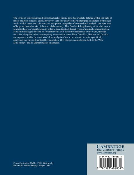 1. Music, theory and signification; 2. Motive as sign: an analysis of the Andante; 3. Coding of musical form: the finale; 4. Genre and presupposition in the Mahlerian Scherzo; 5. Musical narrative and the suicide of the symphony; 6. Coda; Bibliography.
