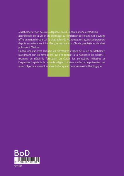 « Mahomet et son oeuvre » d'Ignace-Louis Gondal est une exploration approfondie de la vie et de l'héritage du fondateur de l'islam. Cet ouvrage offre un regard érudit sur la biographie de Mahomet, retraçant son parcours depuis sa naissance à La Mecque jusqu'à son rôle de prophète et de chef politique à Médine. Gondal analyse avec minutie les différentes étapes de la vie de Mahomet, s'attardant sur les révélations qui ont conduit à la naissance de l'islam. Il examine en détail la formation du Coran, les conquêtes militaires et l'expansion rapide de la nouvelle religion. L'auteur s'efforce de présenter une vision objective, mêlant analyse historique et compréhension théologique. Ce livre s'inscrit naturellement dans les rayons d'histoire des religions, de biographies historiques et d'études islamiques. Il offre aux lecteurs une plongée fascinante dans le contexte social, culturel et religieux de l'Arabie du VIIe siècle, éclairant les conditions qui ont permis l'émergence et le succès de l'islam. Gondal ne se contente pas de narrer les événements. Il explore également l'impact durable de Mahomet sur la civilisation islamique, analysant comment ses enseignements et ses actions ont façonné les institutions religieuses, juridiques et sociales du monde musulman. L'auteur aborde des questions complexes telles que la nature de la révélation coranique, le rôle de Mahomet en tant que chef militaire et les défis de l'interprétation de son héritage. « Mahomet et son oeuvre » n'est pas qu'une simple biographie. C'est une réflexion approfondie sur les origines de l'une des plus grandes religions du monde et sur la figure centrale qui l'a fondée. Gondal y apparaît comme un chercheur méticuleux, capable de présenter un portrait nuancé et complet du prophète de l'islam.