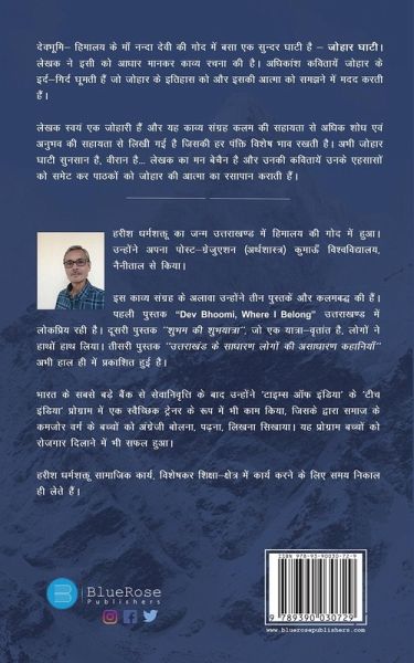 Main Johar Hoon"" is a poetic rendezvous that takes the reader on a panoramic journey to the the 'Johar Valley of Kumaon' in Uttarakhand. Without Johar Valley, 'Dev Bhoomi' is incomplete. The book is a light, alluring read that instantly strikes a chord with Johar Valley, which is full of natural beauties. A trove of more than 40 poems, is quilled with virtues of Johari's and their love for nature. They have established a divine relationship with Himalayas and Tibet. Their Courage, Wisdom, Serenity, Love, Hope, Strength, Joy, Compassion and Gratitude is well depicted in these poems. ""Main Johar Hoon"" is a book that revolves around emotions that most Johari's experience. The collection of poems helps in understanding Joharis and their values, culture and traditions. ""Main Johar Hoon"" very easily develops a personal connection with the reader that is indeed refreshing.