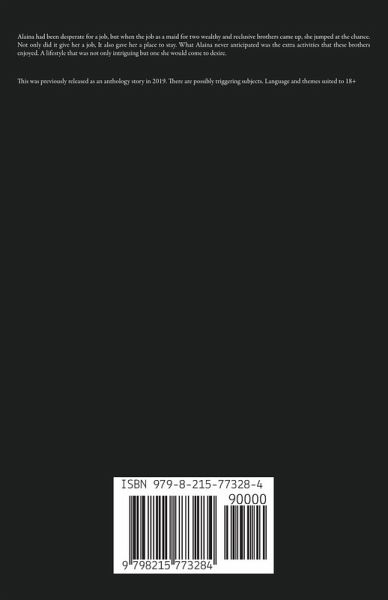 Alaina had been desperate for a job, but when the job as a maid for two wealthy and reclusive brothers came up, she jumped at the chance. Not only did it give her a job, It also gave her a place to stay. What Alaina never anticipated was the extra activities that these brothers enjoyed. A lifestyle that was not only intriguing but one she would come to desire. This was previously released as an anthology story in 2019. There are possibly triggering subjects. Language and themes suited to 18+