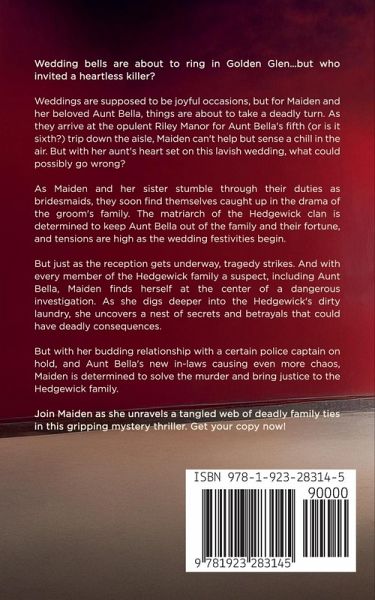 Wedding bells are about to ring...and a killer is about to strike! The sun is shining, the flowers are blooming, and love is in the air. But beneath the surface of all the excitement and celebration, a heartless killer is lurking. Maiden Harlow's beloved Aunt Bella is thrilled to have her wedding at the historic Riley Manor. As they enter the grand estate, however, Maiden can't shake off a feeling of unease. But with Aunt Bella determined to have the perfect wedding, what could possibly go wrong? Maiden and her sister take on their duties as bridesmaids, but they soon become entangled in the…mehr