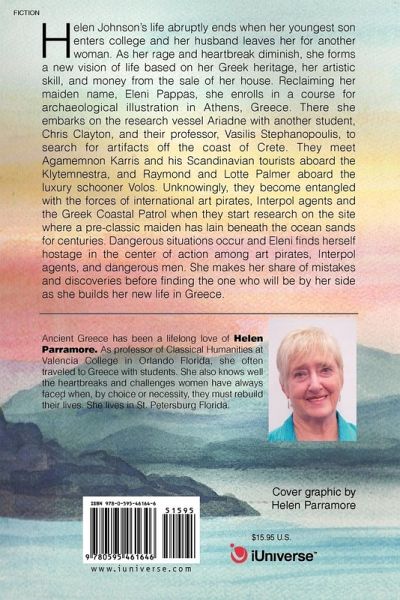 Helen Johnson's life abruptly ends when her youngest son enters college and her husband leaves her for another woman. As her rage and heartbreak diminish, she forms a new vision of life based on her Greek heritage, her artistic skill, and money from the sale of her house. Reclaiming her maiden name, Eleni Pappas, she enrolls in a course for archaeological illustration in Athens, Greece. There she embarks on the research vessel Ariadne with another student, Chris Clayton, and their professor, Basilis Stephanopoulis, to search for artifacts off the coast of Crete. They meet Agamemnon Karris and his Scandinavian tourists aboard the Klytemnestra, and Raymond and Lotte Palmer aboard the luxury schooner Volos. Unknowingly, they become entangled with the forces of international art pirates, Interpol agents and the Greek Coastal Patrol when they start research on the site where a pre-classic maiden has lain beneath the ocean sands for centuries. Dangerous situations occur and Eleni finds herself hostage in the center of action among art pirates, Interpol agents, and dangerous men. She makes her share of mistakes and discoveries before finding the one who will be by her side as she builds her new life in Greece.