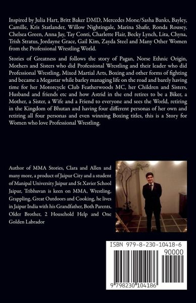 Inspired by Julia Hart, Britt Baker DMD, Mercedes Mone/Sasha Banks, Bayley, Camille, Kris Statlander, Willow Nightingale, Marina Shafir, Ronda Rousey, Chelsea Green, Anna Jay, Tay Conti, Charlette Flair, Becky Lynch, Lita, Chyna, Trish Stratus, Jordayne Grace, Gail Kim, Zayda Steel and Many Other Women from the Professional Wrestling World. Stories of Greatness and follows the story of Pagan, Norse Ethnic Origin, Mothers and Sisters who did Professional Wrestling and their leader who did Professional Wrestling, Mixed Martial Arts, Boxing and other forms of fighting and became a Megastar while barley managing life on the road and barely having time for her Motorcycle Club Featherwoods MC, her Children and Sisters, Husband and friends etc and how Astrid in the end retires to be a Biker, a Mother, a Sister, a Wife and a Friend to everyone and sees the World, retiring in the Kingdom of Bhutan and having four different personas of her own and retiring all four personas and even winning Boxing titles, this is a Story for Women who love Professional Wrestling.