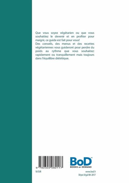 Que vous soyez végétarien ou que vous souhaitiez le devenir et en profiter pour maigrir, ce guide est fait pour vous!Des conseils, des menus et des recettes végétariennes vous guideront pour perdre du poids au rythme que vous souhaitez: rapidement ou tranquillement mais toujours dans l'équilibre diététique.