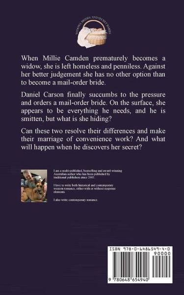 When Millie Camden prematurely becomes a widow, she is left homeless and penniless. Against her better judgement she has no other option than to become a mail-order bride. Daniel Carson finally succumbs to the pressure and orders a mail-order bride. On the surface, she appears to be everything he needs, and he is smitten, but what is she hiding? Can these two resolve their differences and make their marriage of convenience work? And what will happen when he discovers her secret? Author's Promise: This is a heartwarming historical novella with a happily ever after ending and no cliffhangers. It is a clean and wholesome story with nothing more than hugs, kisses, and holding hands.