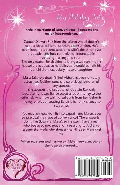 In their marriage of convenience, I become the major inconvenience. Captain Xavran Rax from the planet Aldrai doesn't need a lover, a friend, or even a companion. He's been keeping a secret about his wife's death for over a decade, and he's certainly not interested in replacing her anytime soon. The only reason he decides to bring a woman into his household is because he believes it would benefit his four children, especially his two daughters. Mara Takolsky doesn't find Aldraians even remotely attractive. Neither does she care about children of any species. She accepts the proposal of Captain Rax only because her dead fiancé owed a lot of money to the criminals who now wish to collect it from her, either in money or blood. Leaving Earth is her only chance to stay alive. You may ask how do I fit into captain and Mara's ever so practical marriage of convenience? The answer is I don't. I'm Susanna, Mara's twin sister. I had a man who betrayed me, too, and I tag along to Aldrai to escape the mafia who threaten to kill both Mara and me. When my sister and I arrive on Aldrai, however, things don't go as planned... _______________________ All books in My Holiday Tails series stand alone, loosely connected by the same world and the fact that all heroes have tails. This series can be read in any order. _______________________ Mail Order Mom is a lighthearted MF Alien Romance. It contains graphic scenes of intimacy. Intended for mature readers. Potential Triggers: The mention of a stillbirth experienced by a secondary character in the past.