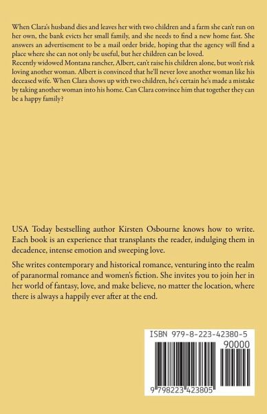 When Clara's husband dies and leaves her with two children and a farm she can't run on her own, the bank evicts her small family, and she needs to find a new home fast. She answers an advertisement to be a mail order bride, hoping that the agency will find a place where she can not only be useful, but her children can be loved. Recently widowed Montana rancher, Albert, can't raise his children alone, but won't risk loving another woman. Albert is convinced that he'll never love another woman like his deceased wife. When Clara shows up with two children, he's certain he's made a mistake by taking another woman into his home. Can Clara convince him that together they can be a happy family?