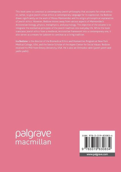 This book aims to construct a contemporary Jewish philosophy that accounts for virtue ethics or, rather, to give Jewish virtue ethics a contemporary language for its expression. Ira Bedzow draws significantly on the work of Moses Maimonides and his religio-philosophical explanation of Jewish ethics. However, Bedzow moves away from various aspects of Maimonides's Aristotelian biology, physics, metaphysics, and psychology. The objective of the volume is to integrate the normative principles of the Jewish tradition into everyday life. While the book translates Jewish ethics from a medieval, Aristotelian framework into a contemporary one, it also serves as a means for Judaism to continue as a living tradition.