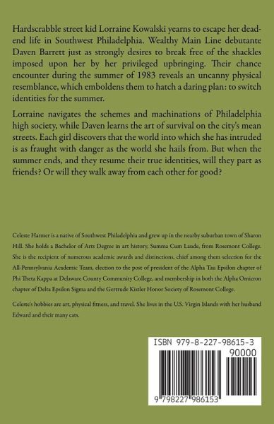 Hardscrabble street kid Lorraine Kowalski yearns to escape her dead-end life in Southwest Philadelphia. Wealthy Main Line debutante Daven Barrett just as strongly desires to break free of the shackles imposed upon her by her privileged upbringing. Their chance encounter during the summer of 1983 reveals an uncanny physical resemblance, which emboldens them to hatch a daring plan: to switch identities for the summer. Lorraine navigates the schemes and machinations of Philadelphia high society, while Daven learns the art of survival on the city's mean streets. Each girl discovers that the world into which she has intruded is as fraught with danger as the world she hails from. But when the summer ends, and they resume their true identities, will they part as friends? Or will they walk away from each other for good?