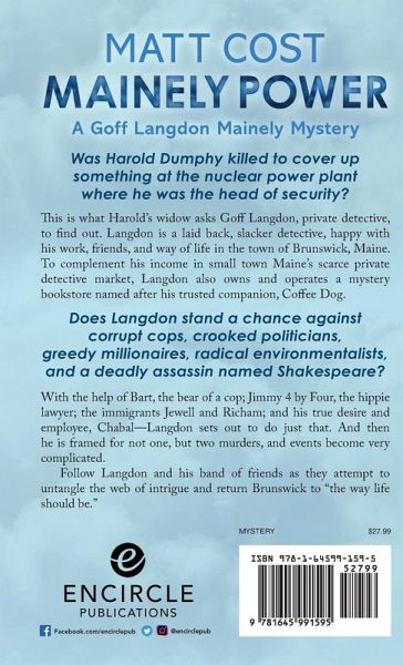 Was Harold Dumphy killed to cover up something at the nuclear power plant where he was the head of security? This is what Harold's widow asks Goff Langdon, private detective, to find out. Langdon is a laid back, slacker detective, happy with his work, friends, and way of life in the town of Brunswick, Maine. To compliment his income in small town Maine's scarce private detective market, Langdon also owns and operates a mystery bookstore named after his trusted companion, Coffee Dog. Does Langdon stand a chance against corrupt cops, crooked politicians, greedy millionaires, radical environmentalists, and a deadly assassin named Shakespeare? With the help of Bart, the bear of a cop; Jimmy 4 by Four, the hippie lawyer; the immigrants Jewell and Richam; and his true desire and employee, Chabal-Langdon sets out to do just that. And then he is framed for not one, but two murders, and events become very complicated. Follow Langdon and his band of friends as they attempt to untangle the web of intrigue and return Brunswick to "the way life should be."