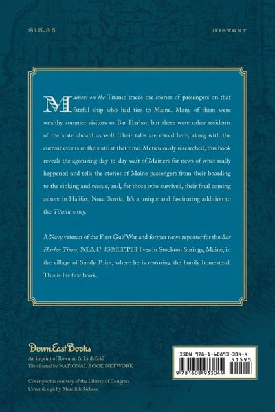 Meticulously researched, this book reveals the agonizing day-to-day wait of Mainers for news of what really happened on the Titanic, and tells the stories of Maine passengers from their boarding to the sinking and rescue; and, for those who survived, of their coming ashore in Halifax, Nova Scotia. It's a fascinating addition to the Titanic story.