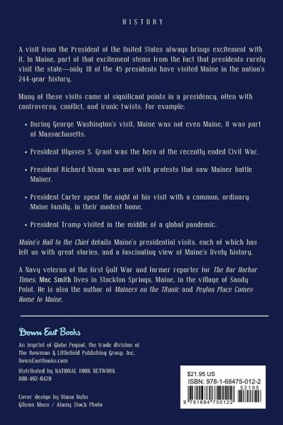 A visit from the President of the United States always brings with it excitement. In Maine, perhaps part of that excitement stems from the fact that presidents rarely visit the state–only 18 of the 45 presidents have visited Maine in the nation’s 244-year history. Many of these visits came at significant points in a presidency; and some visits had controversy, conflict, and ironic twists. For example: * During George Washington’s visit, Maine was not even Maine, it was part of Massachusetts. * President Ulysses S. Grant was the hero of the recently ended Civil War. * President Richard Nixon was met with protests that saw Mainer battle Mainer. * President Carter spent the night of his visit with a common, ordinary Maine family, in their modest home. * President Trump’s visit came in the middle of a global pandemic. Each of Maine's presidential visits left us with great stories, and a detailed view of Maine's lively history.