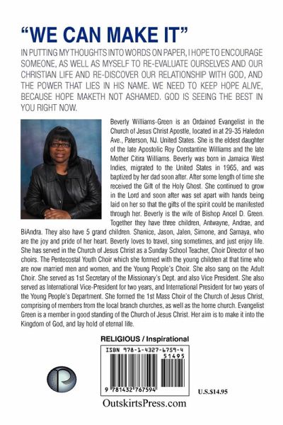 In putting my thoughts into words on paper, I hope to encourage someone, as well as myself to re-evaluate ourselves and our Christian Life and re-discover our relationship with God, and the power that lies in His name. We need to keep hope alive, because hope maketh not ashame. God is seeing the best in you Right Now.