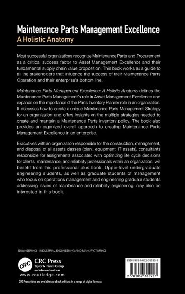 Most successful organizations recognize Maintenance Parts and Procurement as a critical success factor to Asset Management Excellence and their fundamental supply chain value proposition. This book works as a guide to all the stakeholders that influence the success of their Maintenance Parts Operation and their enterpriseâ s bottom line.